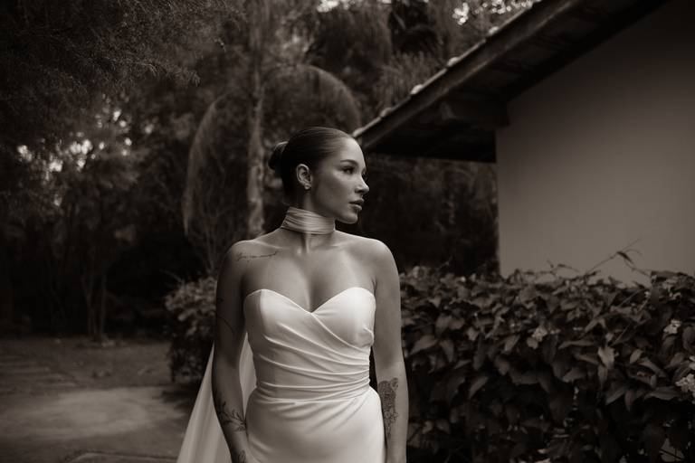 Ensaio fotográfico noiva elegante p&b